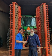 圃場整備から保管まで複数に分類した工程毎に製造並びに品質管理をしています。 各工程の品質管理情報は、Bioghum Linkを用いて一元管理、監視をしています。 右は、圃場整備用の農耕機械の前でオーストラリア農地オーナーと当社社長が今後も継続した協業を相互で同意した時の写真です。