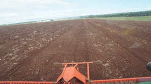 左は、上記の写真は圃場整備用農耕機械の前方アタッチメントを水平に広げ、運転席から見た圃場整備中の写真です。